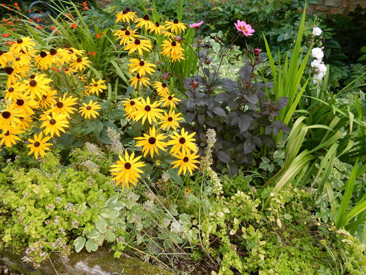 Un coin plantes condimentaires agrémentera vos préparations culinaires : origan, thym, mélisse, basilic, menthe