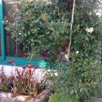 Votre voiture stationnera devant le mur près des rosiers grimpants